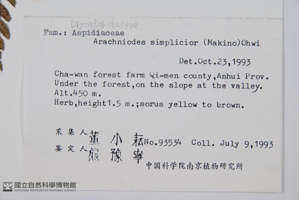 Scientific Name: Arachniodes simplicior (Makino) Ohwi