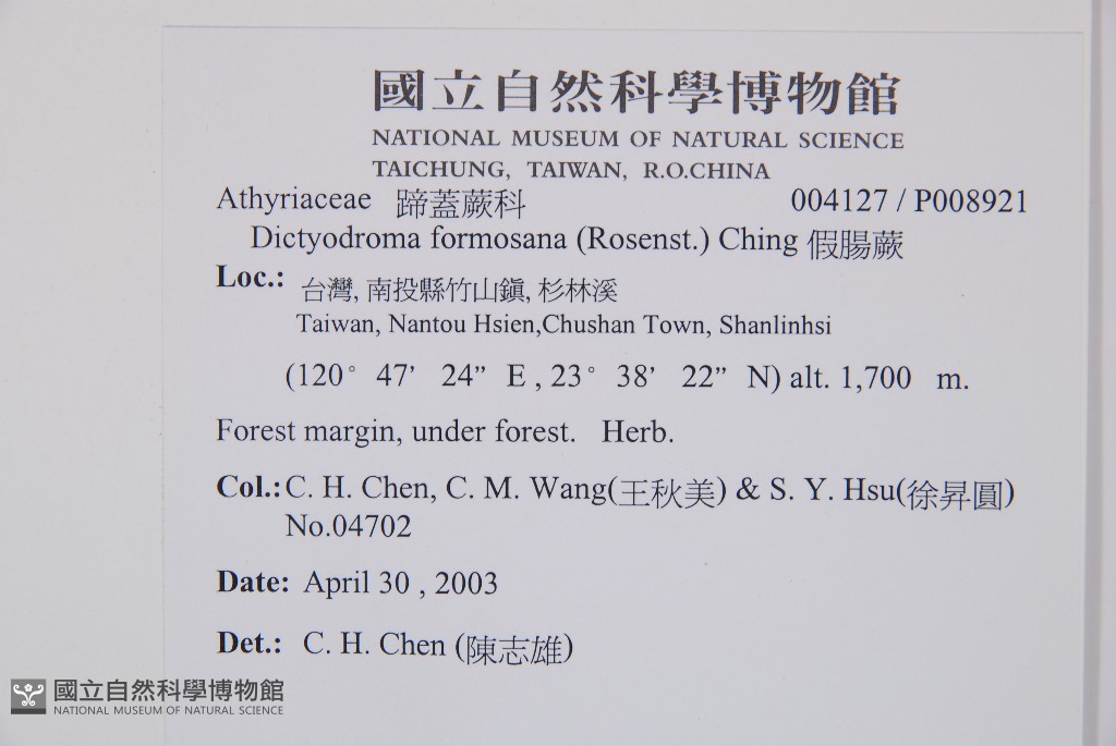 Collector:Chih-Hsiung Chen (陳志雄), Chiu-Mei Wang (王秋美), & Sheng-Yuan Hsu (徐昇圓)
