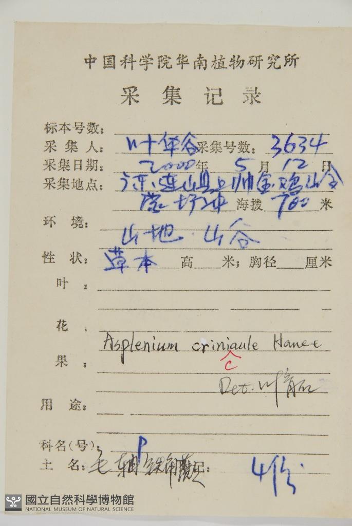 Collector's No.:葉?3634