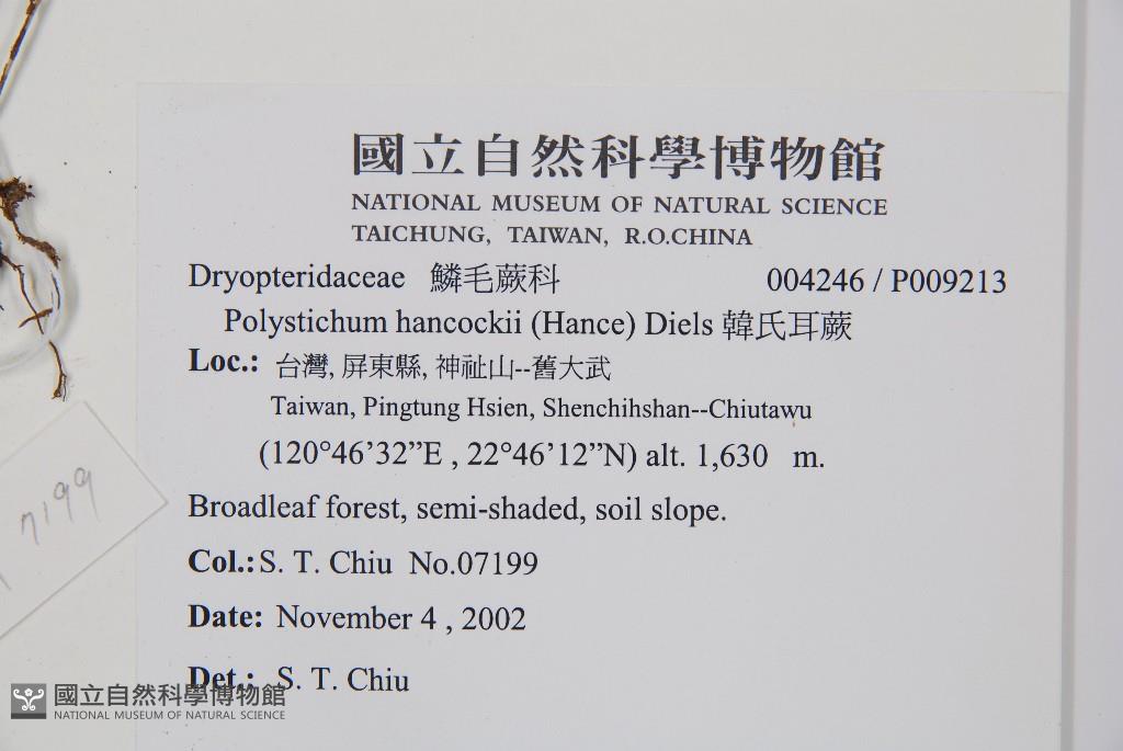 Scientific Name: Polystichum hancockii (Hance) Diels