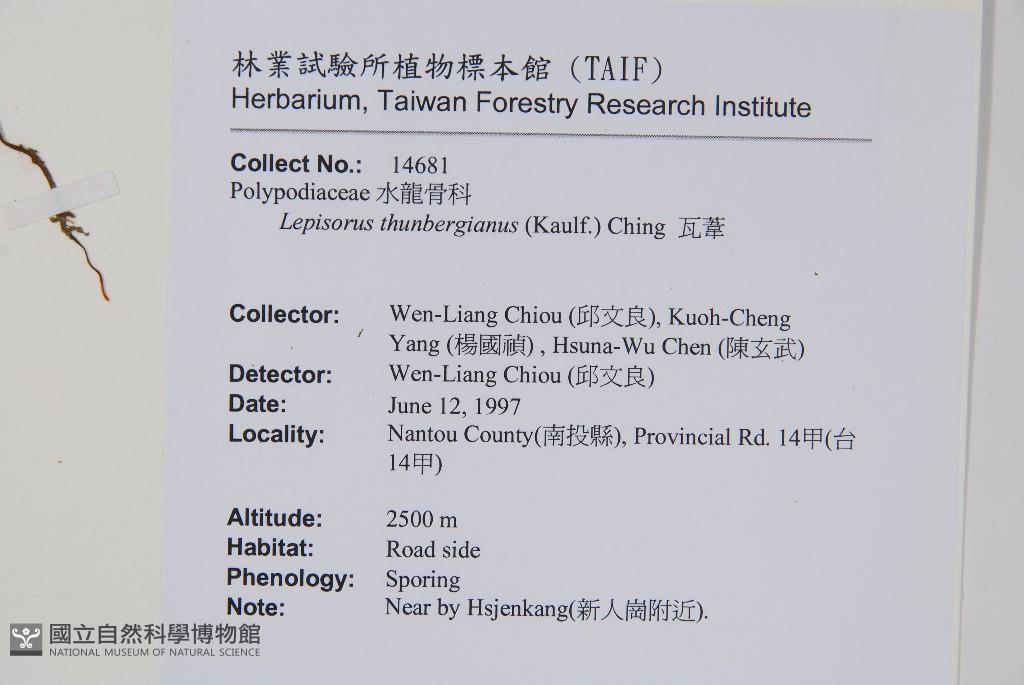 Collector:Wen-liang Chiou(邱文良), Kuoh-Cheng Yang(楊國禎), Hsuna-Wu Chen(陳玄武