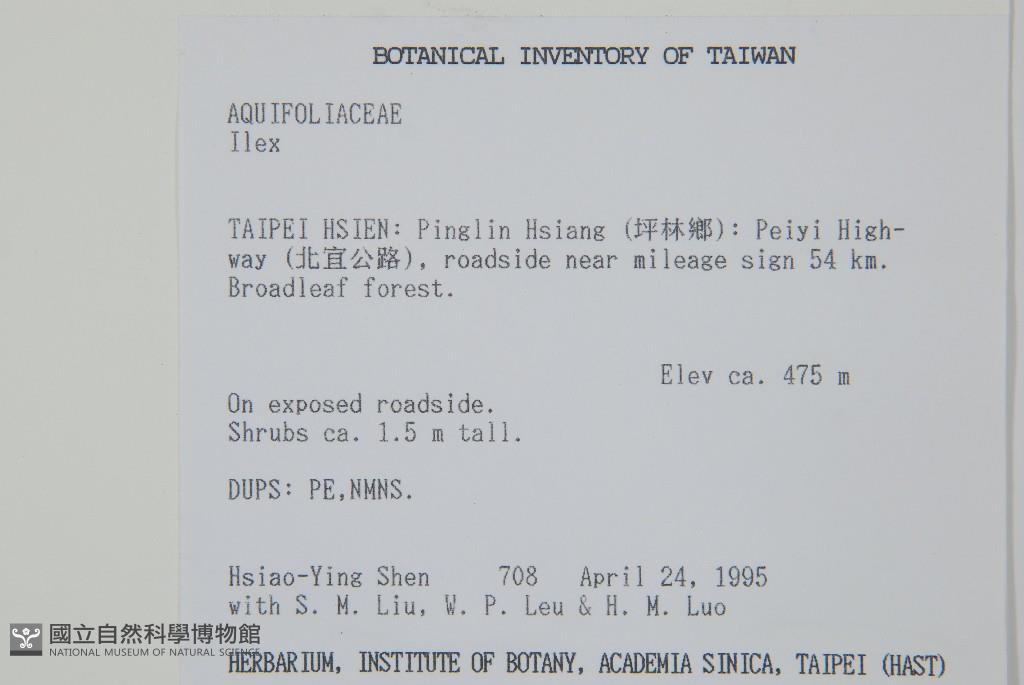 Collector:H. Y. Shen, S. M. Liu, W. P. Leu & H. M. Luo