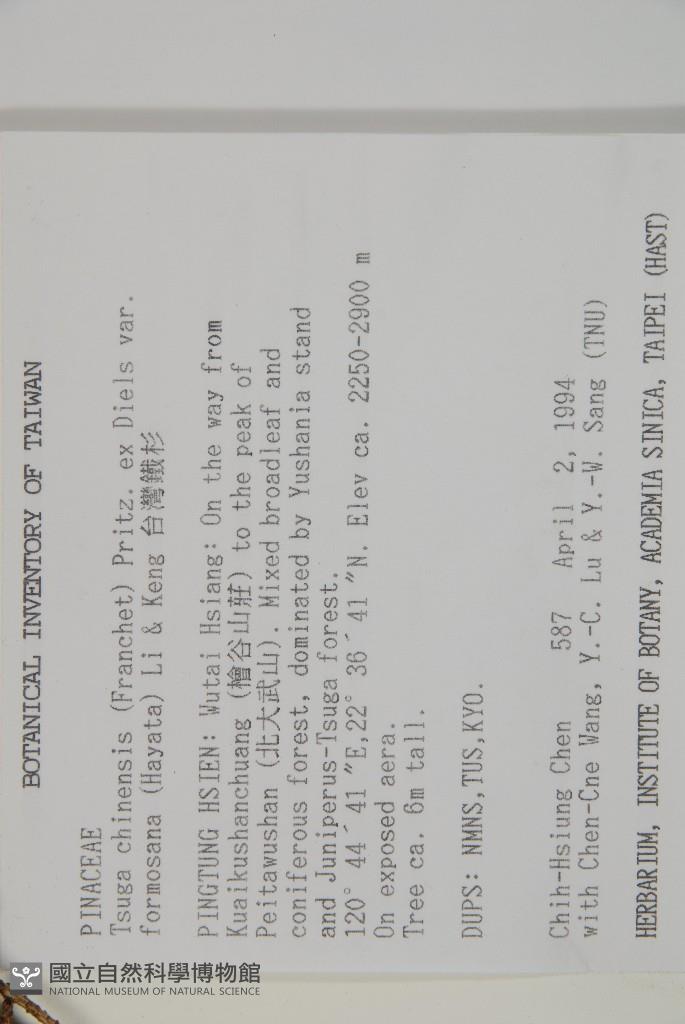 Scientific Name: Tsuga chinensis (Franch.) Pritz. ex Diels var. formosana (Hayata) Li & Keng