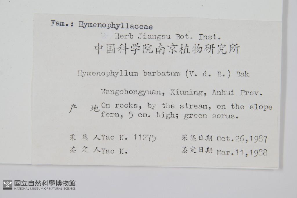Scientific Name: Hymenophyllum barbatum (v. d. Bosch) Bak.
