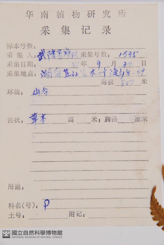 Collector's No.:武01535