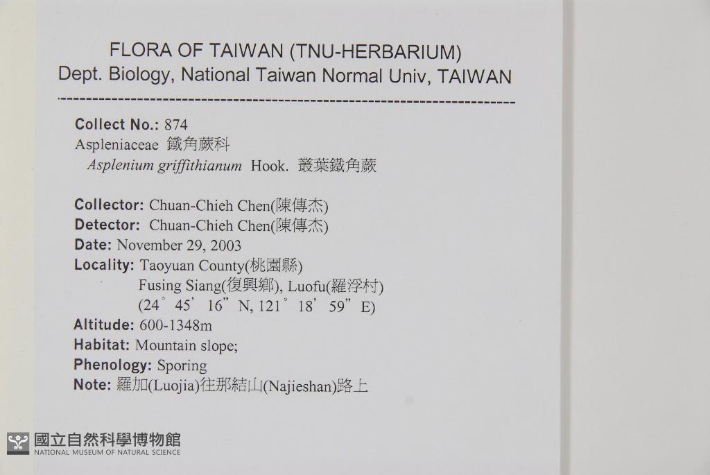 Scientific Name: Asplenium griffithianum Hook.