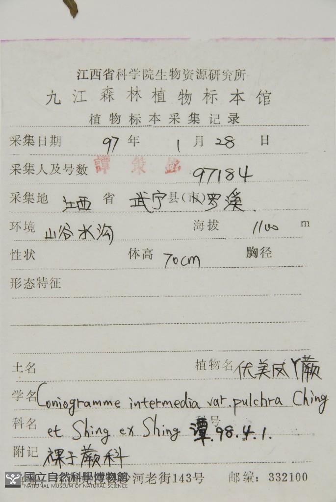 Scientific Name: Coniogramme intermedia Hieron. var. pulchra Ching & K. H. Shing