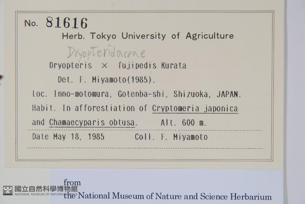 Scientific Name: Dryopteris × fujipedis Kurata