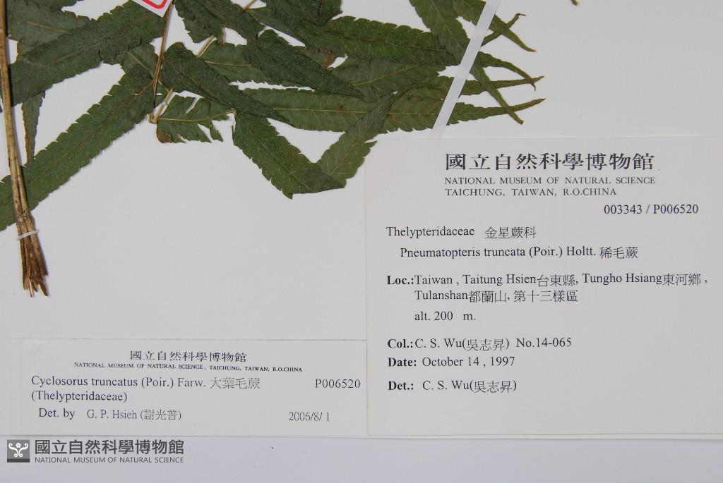 Scientific Name: Cyclosorus truncatus (Poir.) Farw.