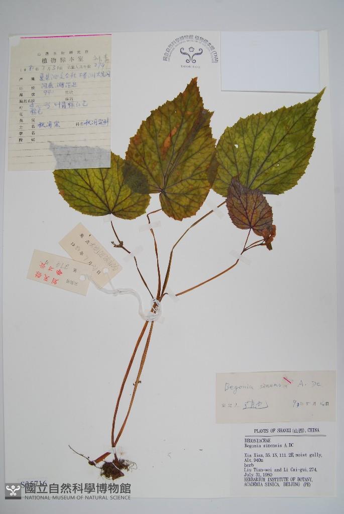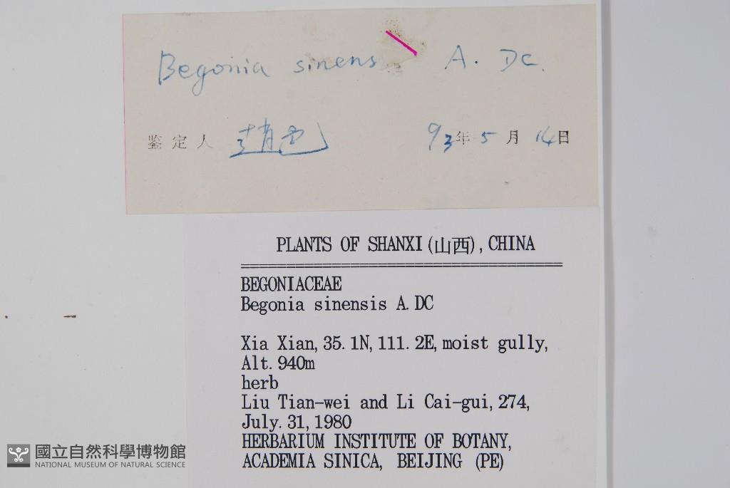 Scientific Name: Begonia sinensis A. DC.