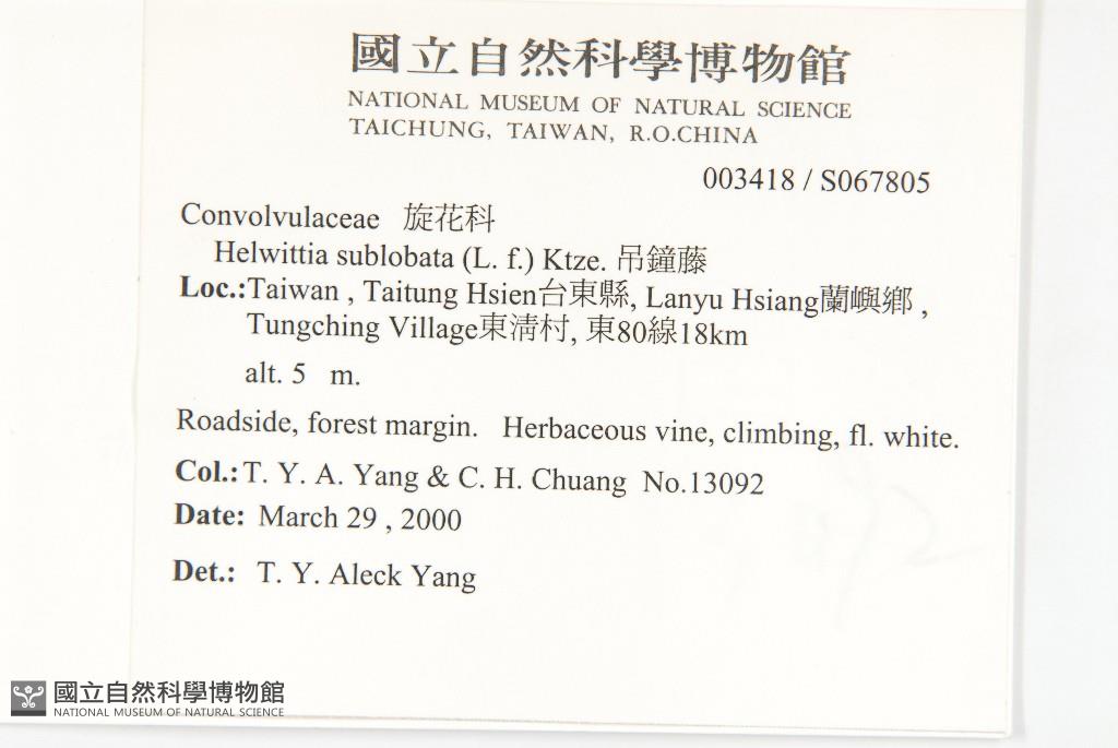 Collector:T. Y. A. Yang & C. H. Chuang