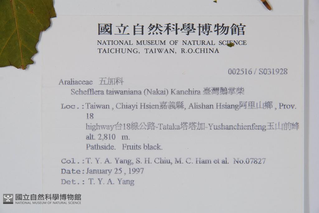 Scientific Name: Schefflera taiwaniana (Nakai) Kanehira