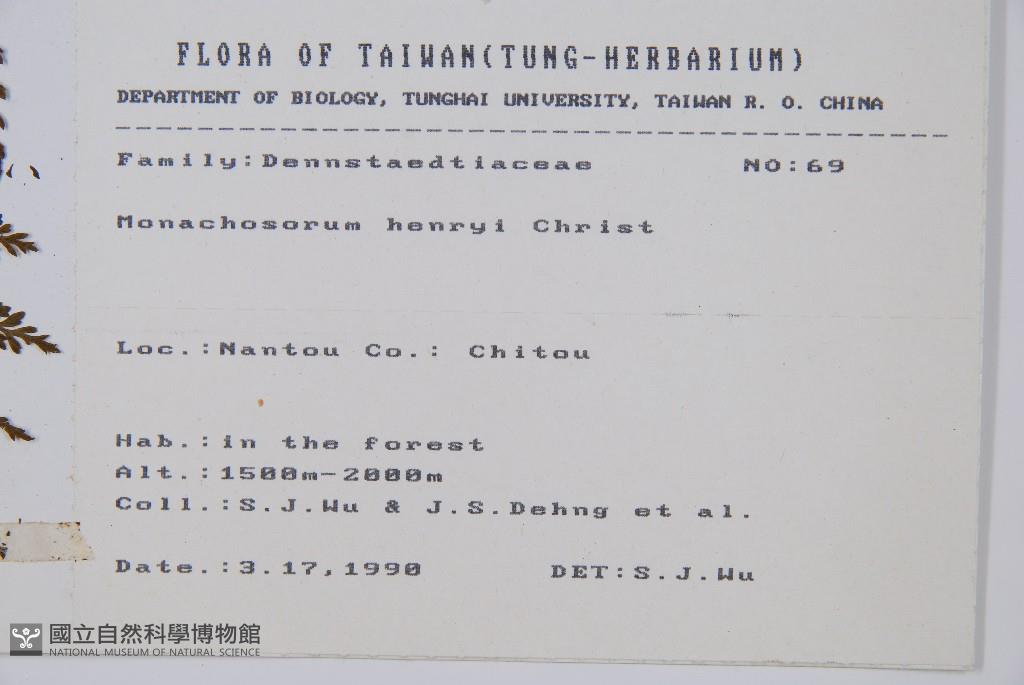 Collector:S. J. Wu & J. S. Dehng et al.