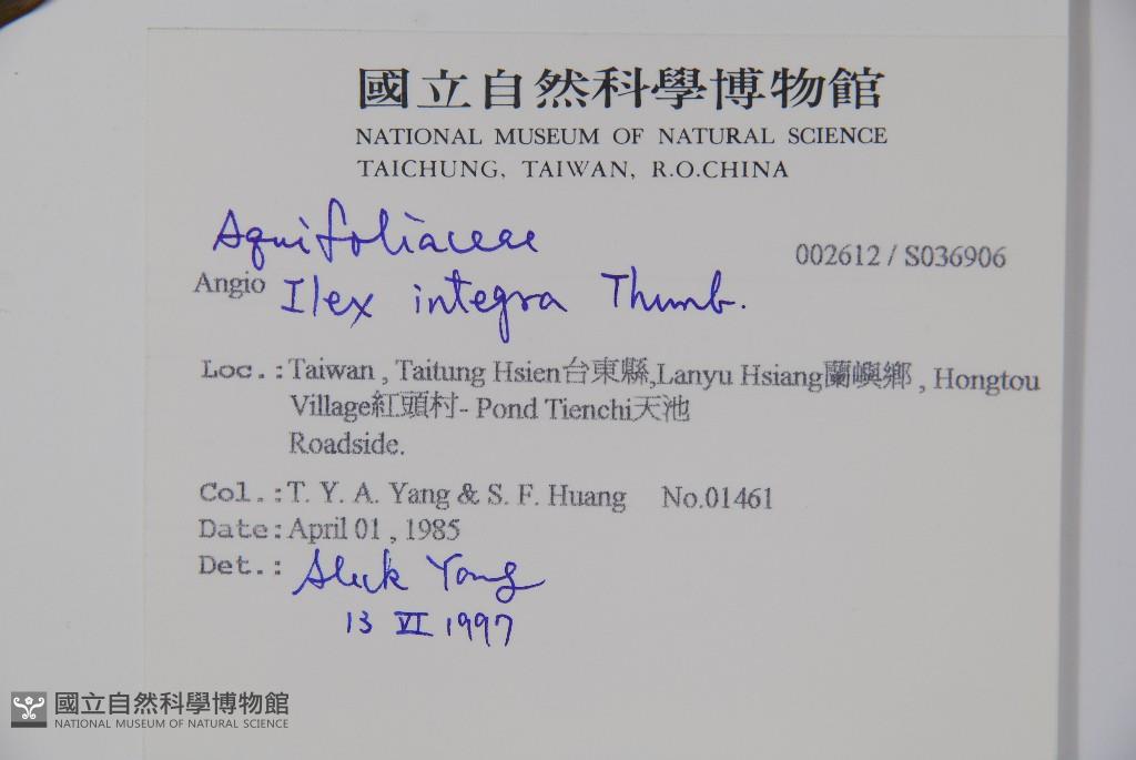 Collector:T. Y. A. Yang & S. F. Huang