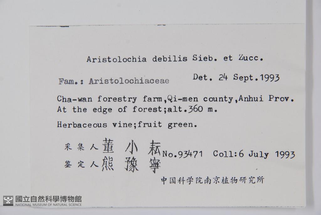 Scientific Name: Aristolochia debilis Sieb. & Zucc.