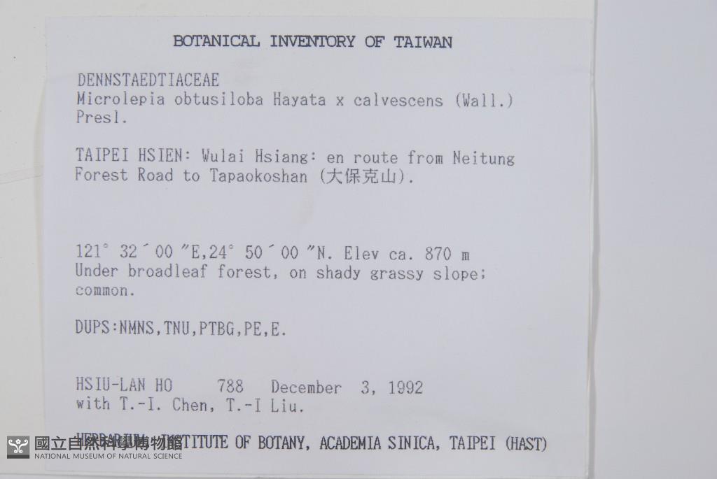 Collector:H. L. Ho, T. I. Chen & T. I Liu