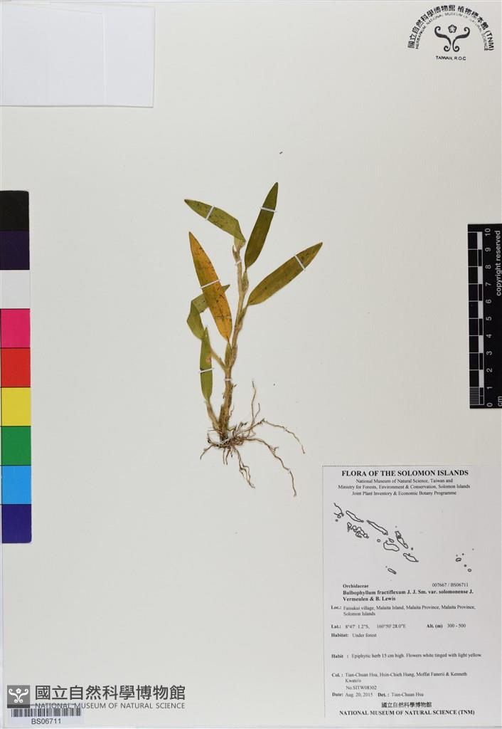 Scientific Name: Bulbophyllum fractiflexum J. J. Sm. var. solomonense J. Vermeulen & B. Lewis