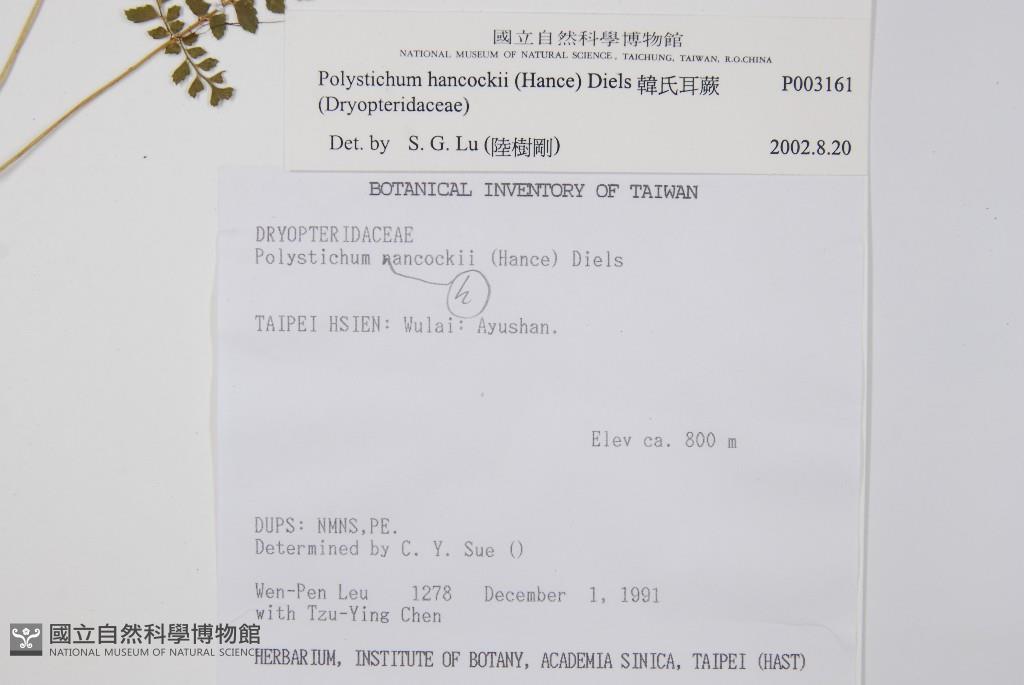 Scientific Name: Polystichum hancockii (Hance) Diels