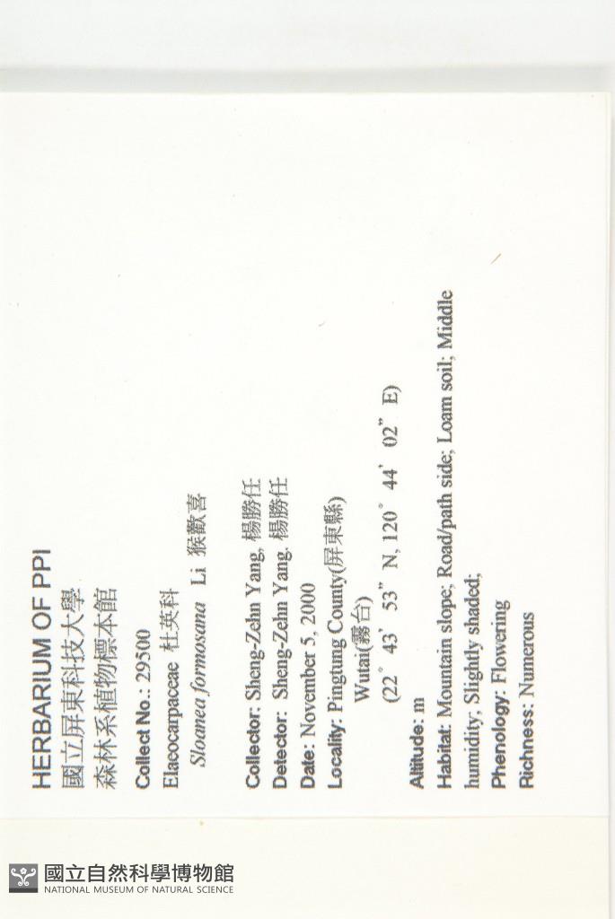 Collector:S. Z. Yang (楊勝任)