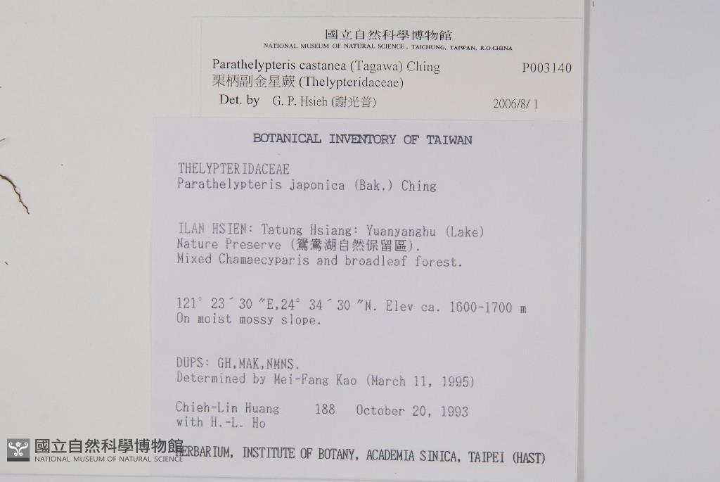 Scientific Name: Parathelypteris castanea (Tagawa) Ching