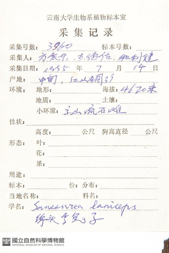 Scientific Name: Saussurea laniceps Hand.-Mazz.