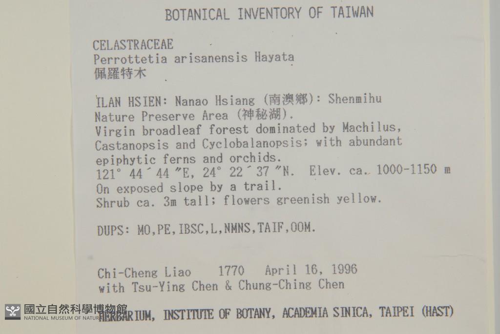 Collector:C. C. Liao, T. Y. Chen & C. C. Chen