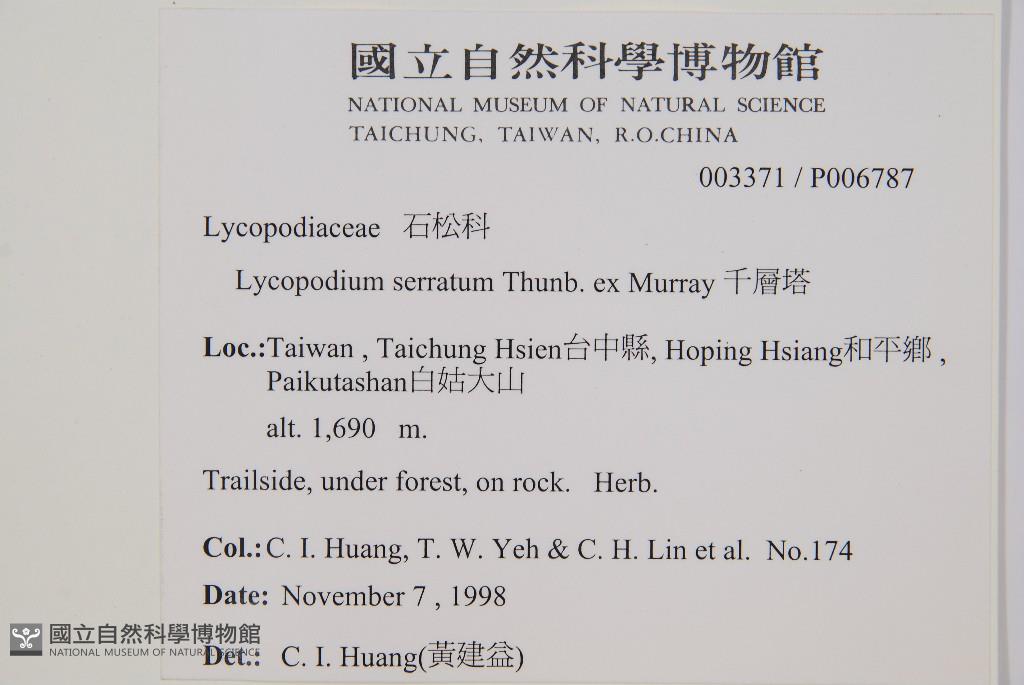 Collector:C. I. Huang, T. W. Yeh & C. H. Lin et al.