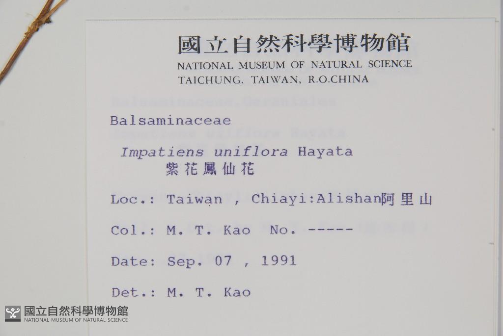 Scientific Name: Impatiens uniflora Hayata