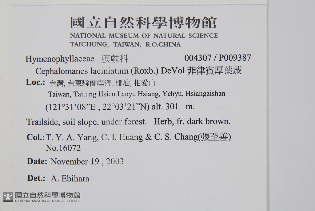 Collector:T. Y. A. Yang, C. I. Huang & C. S. Chang(張至善)