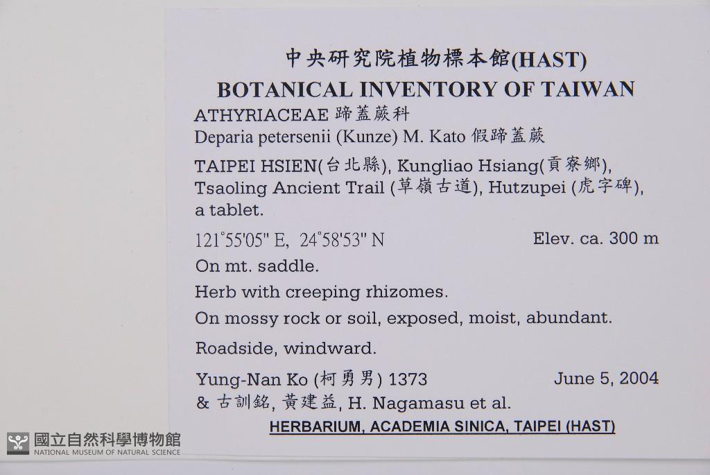 Collector:Yung-Nan Ko(柯勇男) & 古訓銘, 黃建益, H. Nagamasu et al