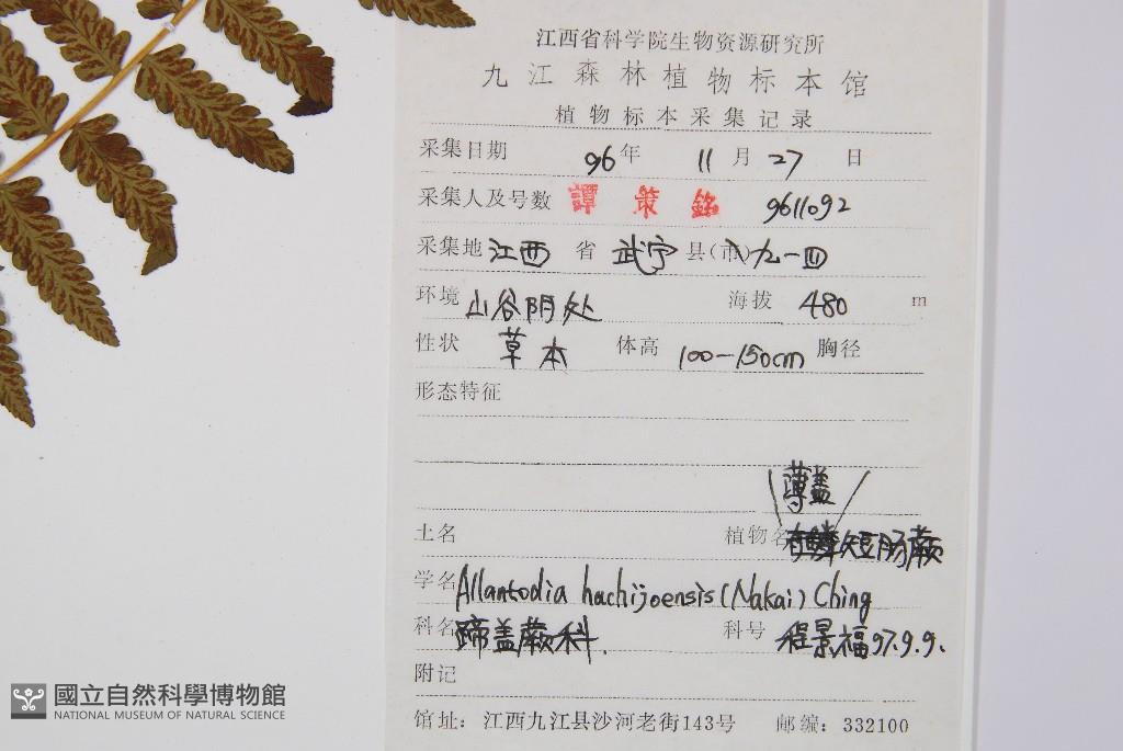 Scientific Name: Allantodia hachijoensis (Nakai) Ching