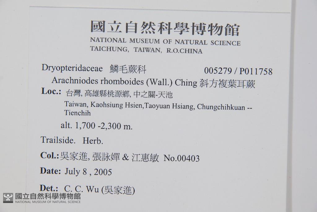 Scientific Name: Arachniodes pseudo-aristata (Tagawa) Ohwi