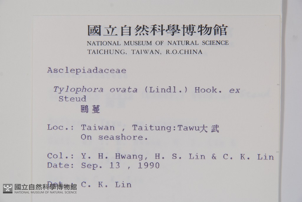 Collector:Yee-Hsiung Hwang (黃義雄), Hann-Song Lin (林漢松), & Chung-Kang Lin (林仲剛)