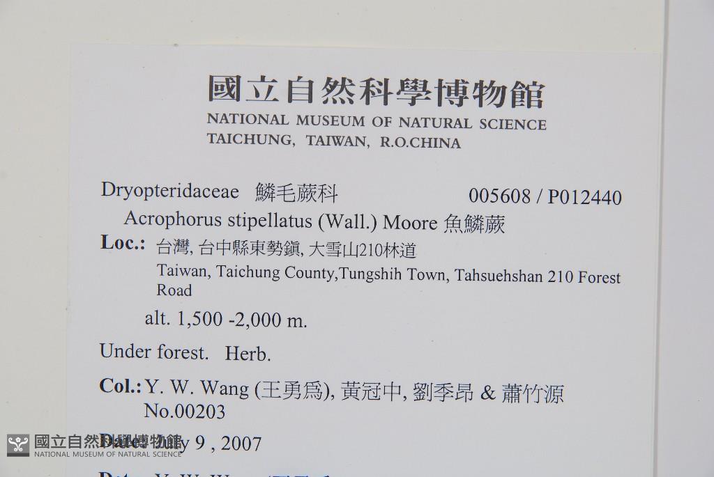Collector:Y. W. Wang (王勇為), 黃冠中, 劉季昂 & 蕭竹源