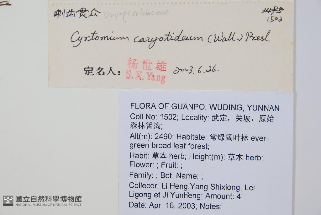 Collector:Heng Li (李恆), Shi-Xiong Yang, Li-Gong Lei, & al.