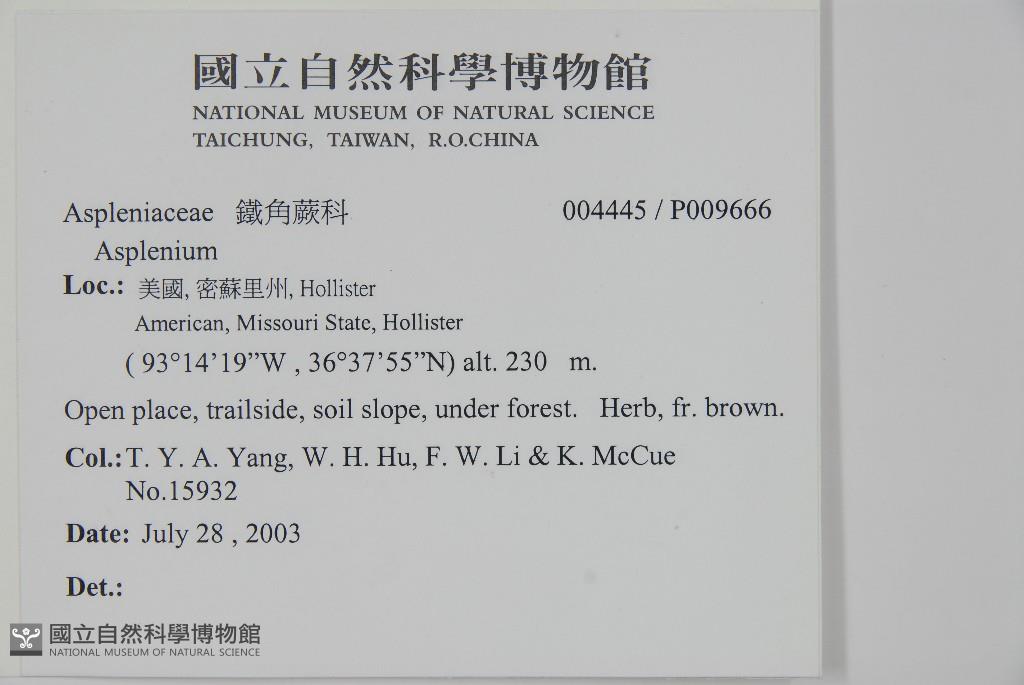 Collector:T. Y. A. Yang, W. H. Hu, F. W. Li & K. McCue