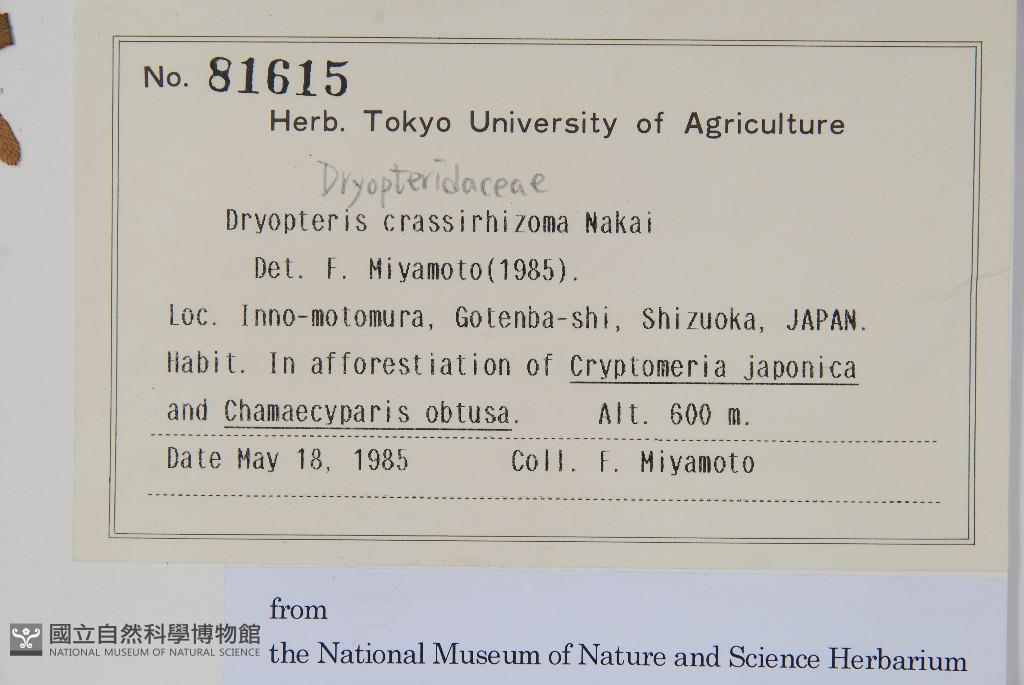 Scientific Name: Dryopteris crassirhizoma Nakai