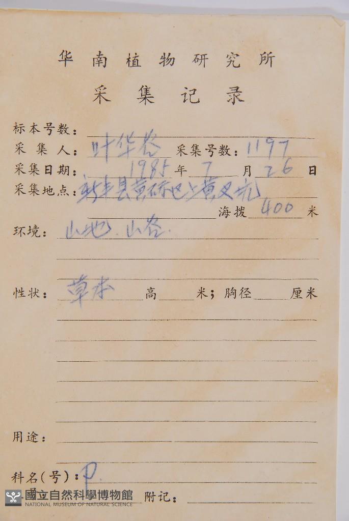 Collector's No.:葉?1197