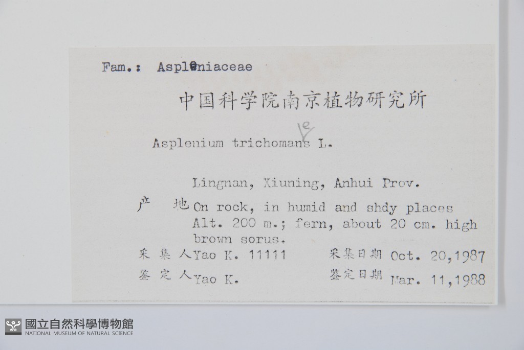 Scientific Name: Asplenium trichomanes L.