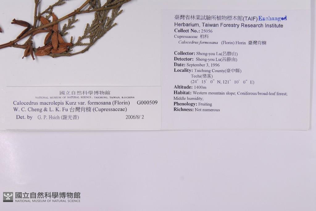 Scientific Name: Calocedrus macrolepis Kurz var. formosana (Florin) W. C. Cheng & L. K. Fu