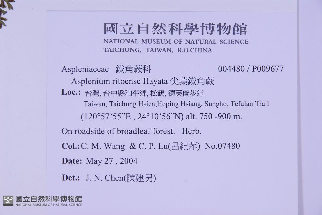 Scientific Name: Asplenium ritoense Hayata