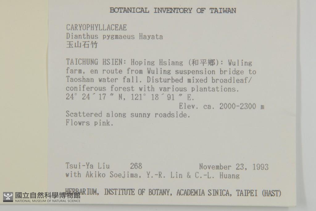 Collector:T. Y. Liu & A. Soejima, Y. R. Lin & C. L. Huang