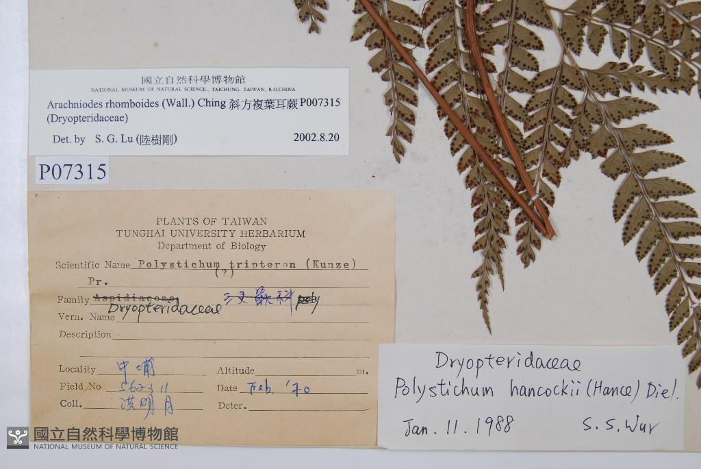 Scientific Name: Arachniodes rhomboides (Wall.) Ching