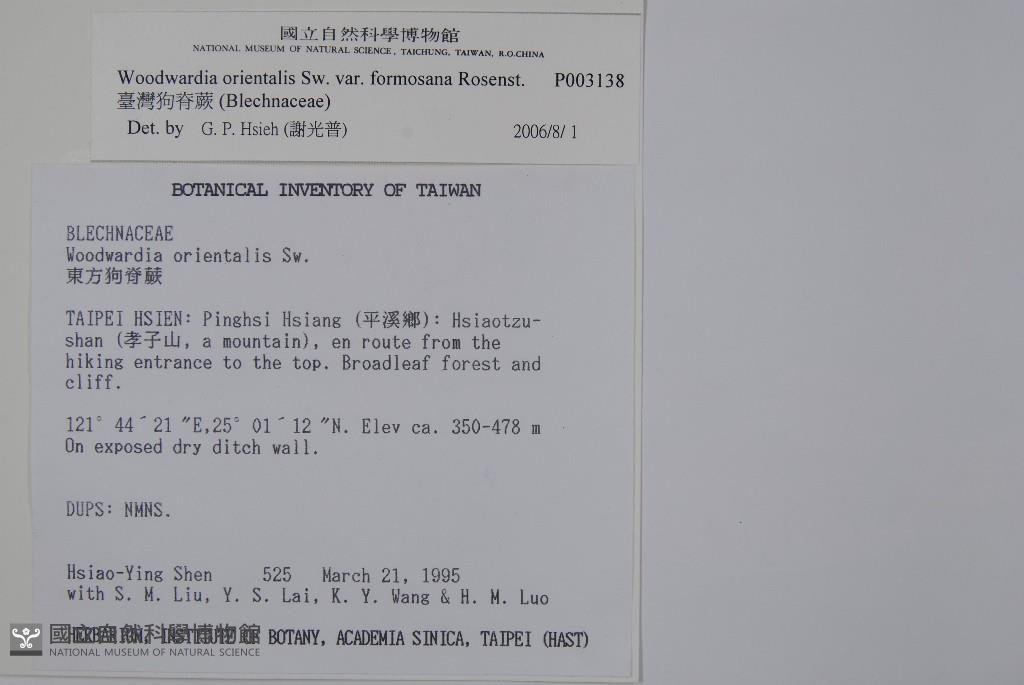 Scientific Name: Woodwardia orientalis Sw. var. formosana Rosenst.
