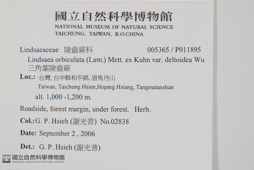 Scientific Name: Lindsaea orbiculata (Lam.) Mett. ex Kuhn var. deltoidea Wu