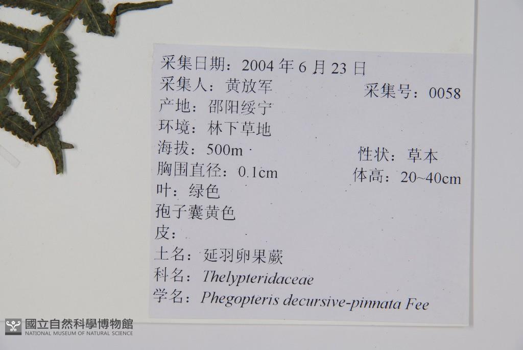 Scientific Name: Phegopteris decursive-pinnata (van Hall) F'ee