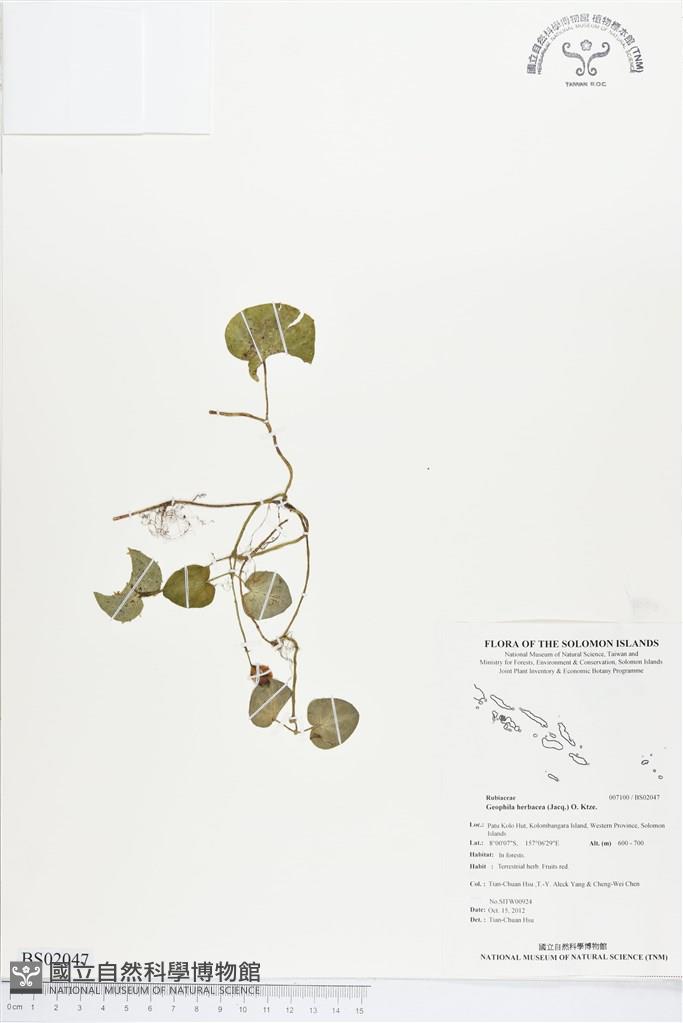Scientific Name: Geophila herbacea (Jacq.) O. Ktze.