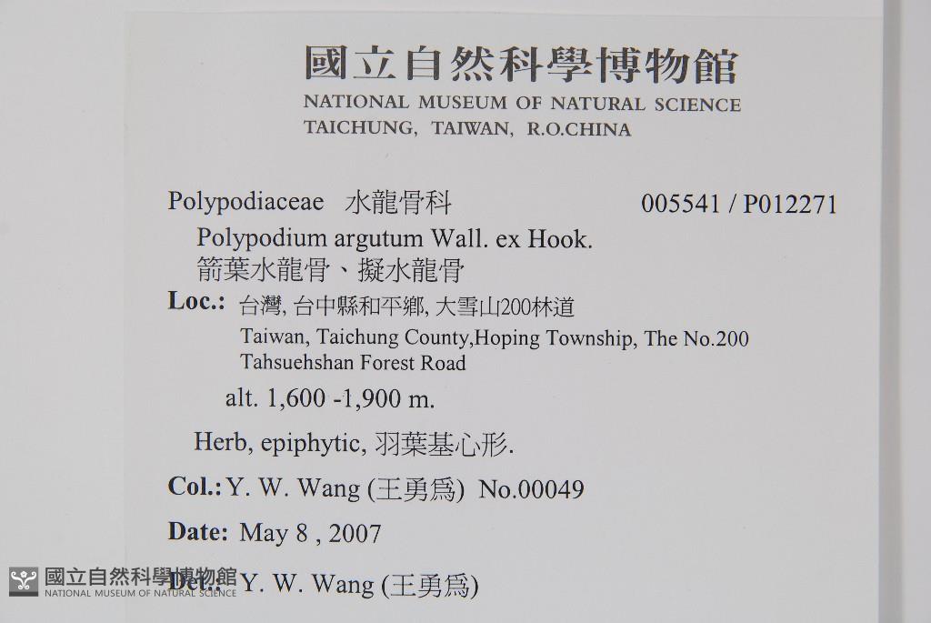 Collector:Y. W. Wang (王勇為)