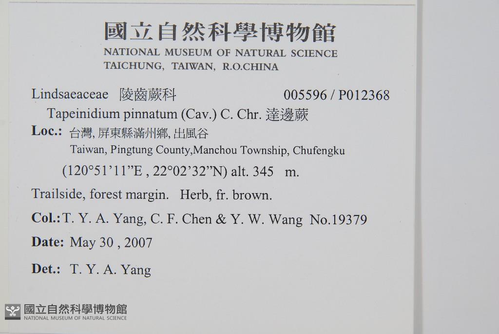 Collector:T. Y. A. Yang, C. F. Chen & Y. W. Wang