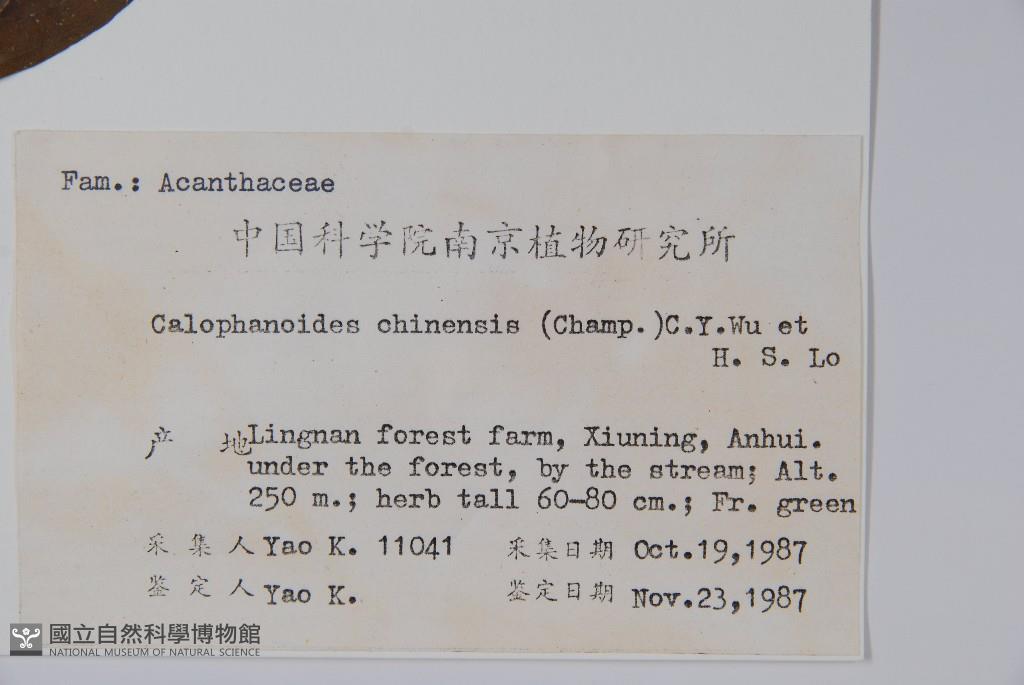 Scientific Name: Calophanoides chinensis (Champ.) C. Y. Wu & H. S. Lo